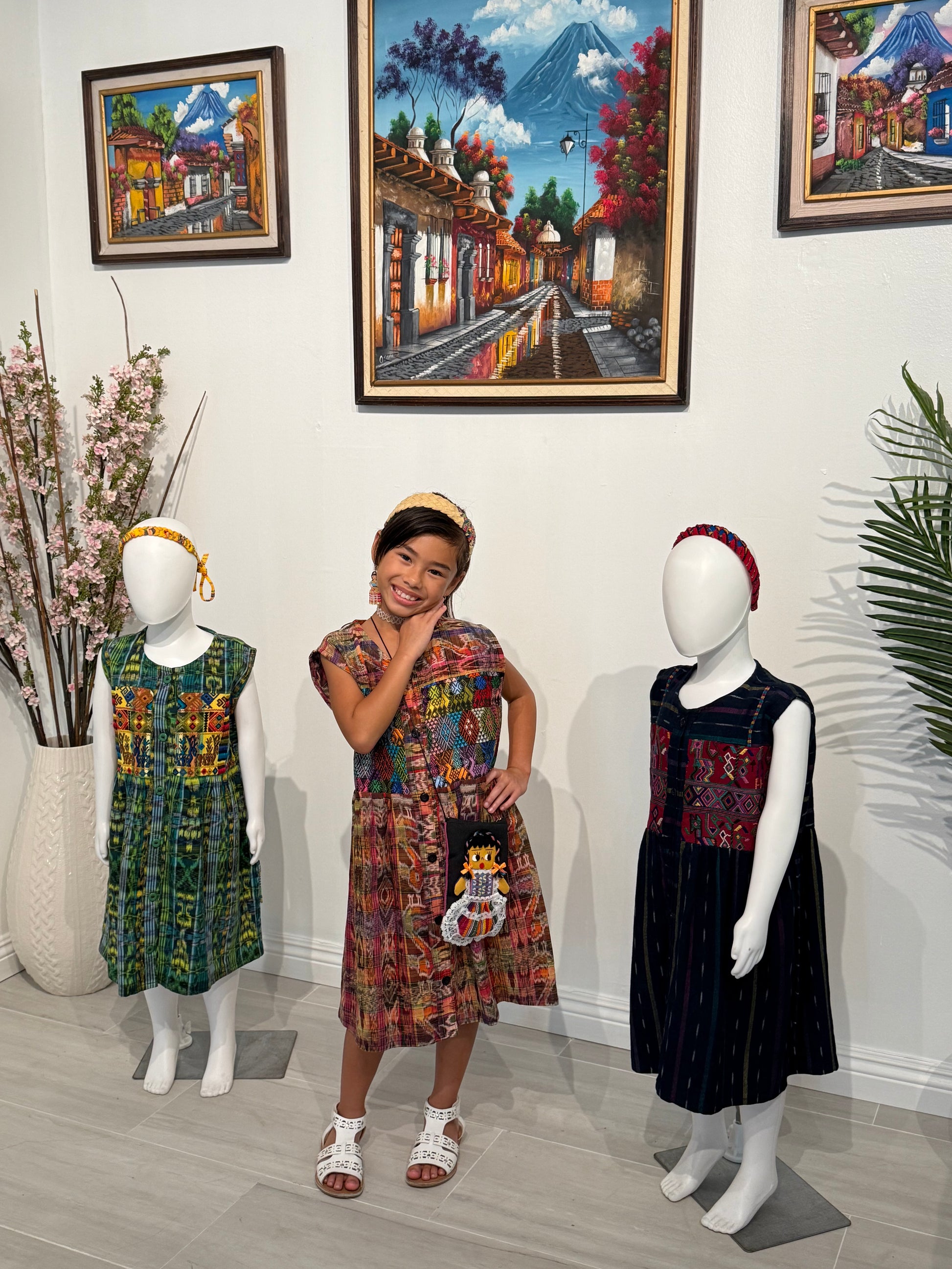 This beautiful handmade dress reflects Guatemala's culture through its vibrants colors and patterns. It has straps on the back for an adjustable fit.