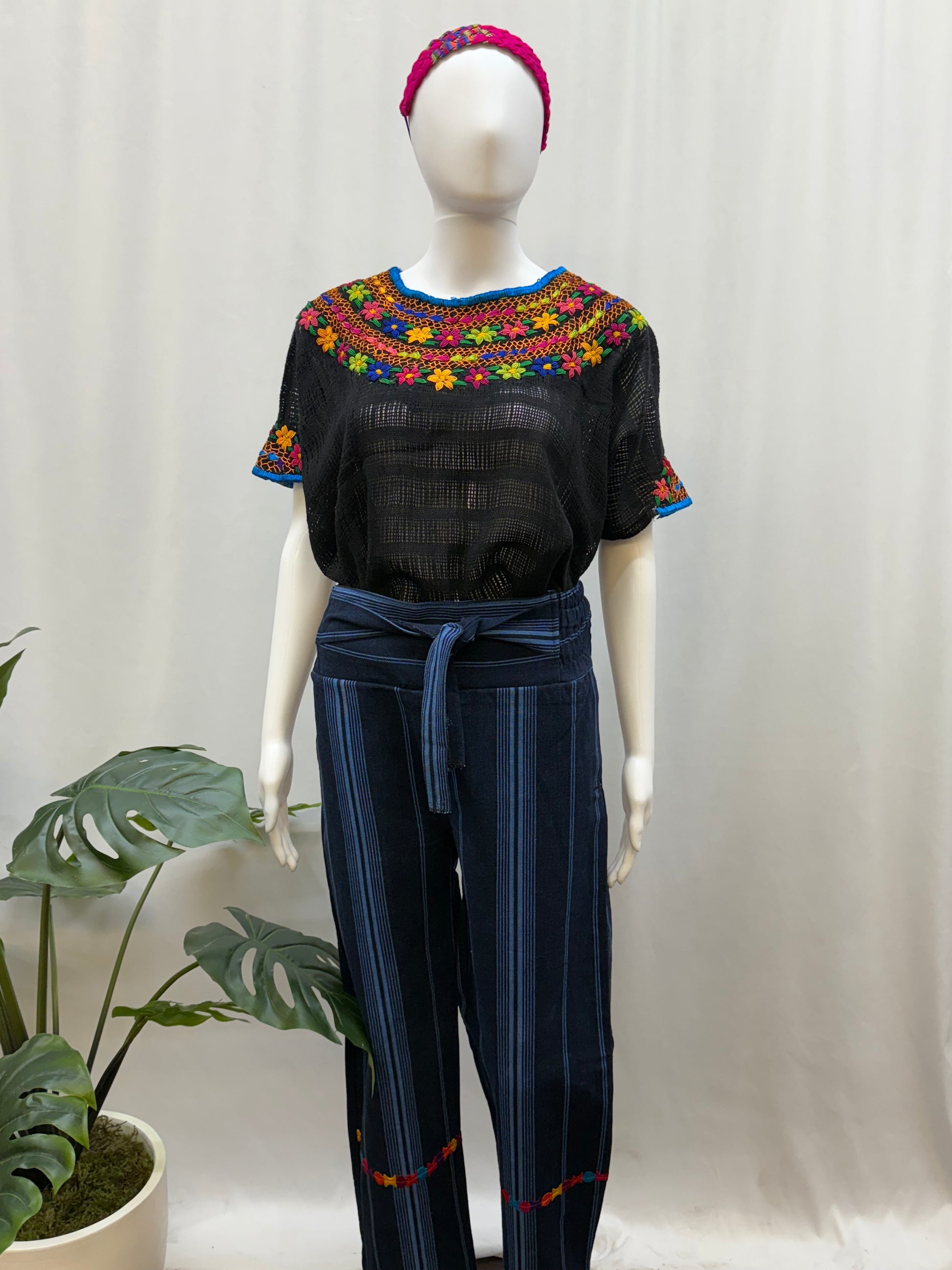 This gorgeous Huipil is a unique piece handwoven in Coban Guatemala. It has embroidered flowers around the neck and sleeves. Huipil is made out of manta with natural dyes; I would recommended washing with cold water and air dry.