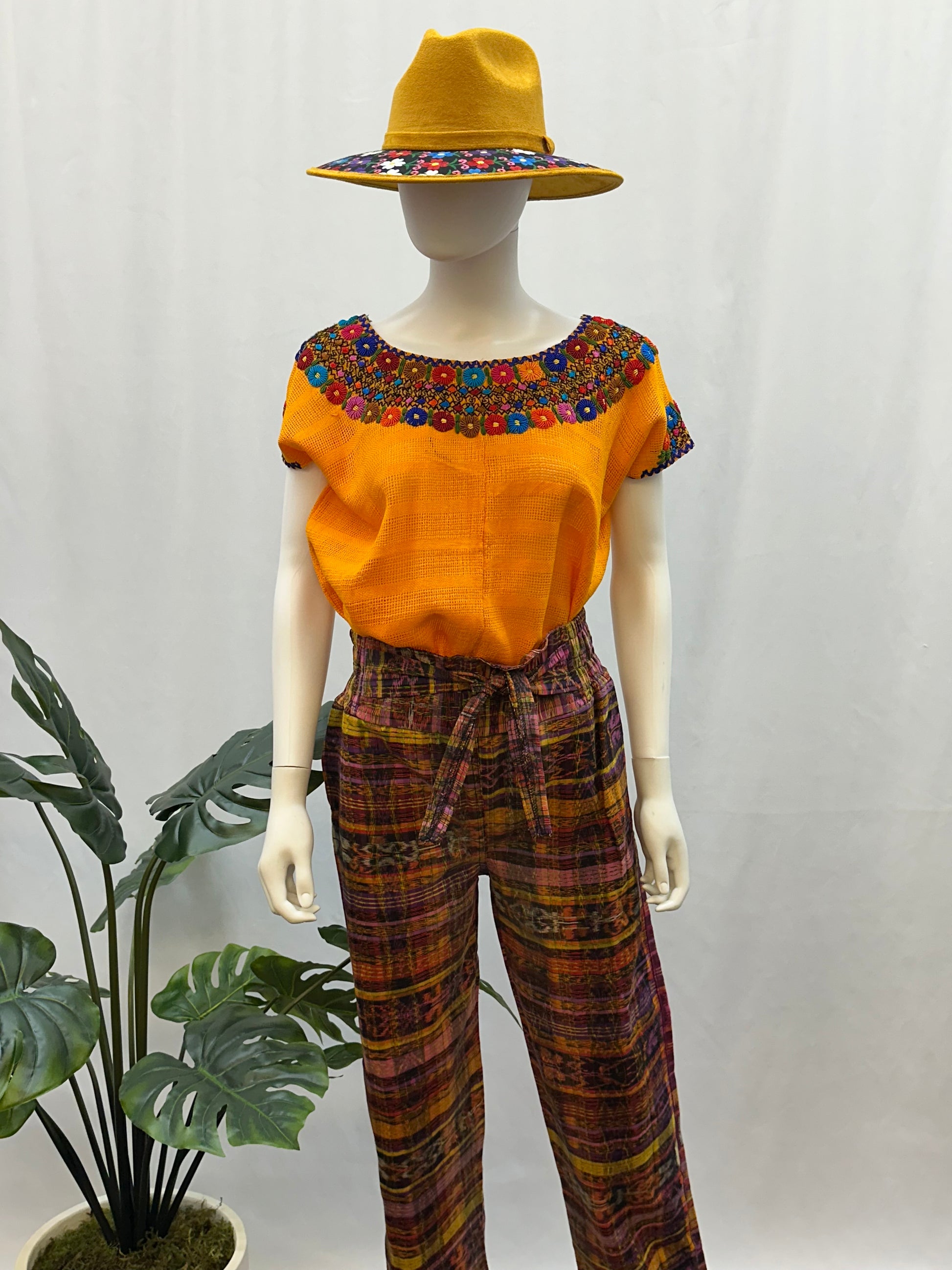 This gorgeous Huipil is a unique piece handwoven in Coban Guatemala. It has embroidered flowers around the neck and sleeves. Huipil is made out of manta with natural dyes; I would recommended washing with cold water and air dry.