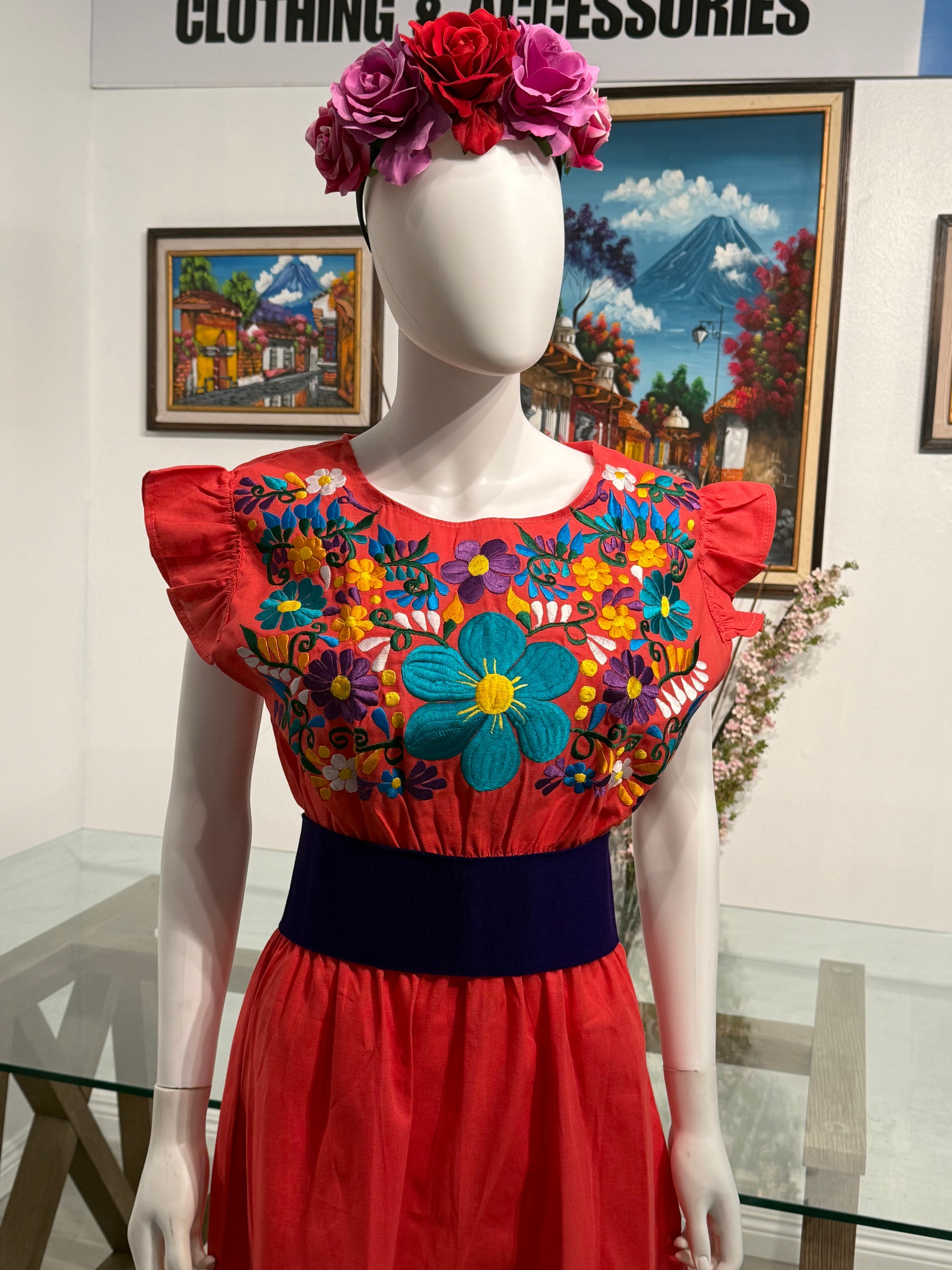 This dress is exceptionally beautiful and comfortable. The embroidery has stunning bright flowers which make it stylish and elegant. It has straps on the back for adjustable fit. This dress is perfect for the Day of the Death tradition, 5 de Mayo festivities or a special occasion.