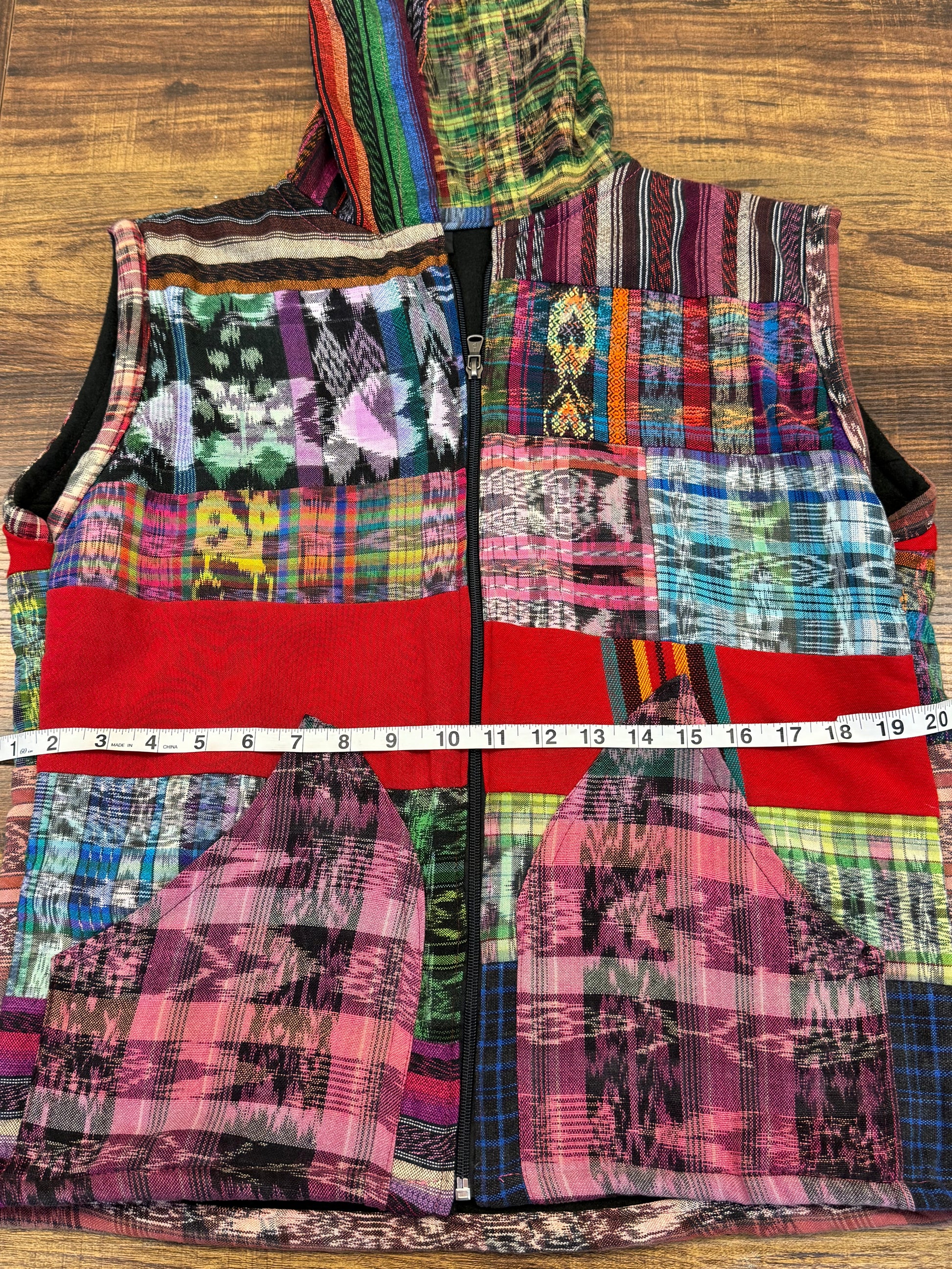 The uniqueness and vibrant colors of the patchwork is beautiful. Each patchwork is handwoven and represents different cities of Guatemala influence by the Mayan culture. The vest is lightweight, it has two pockets and zipper. This is a modern and stylish vest you can wear on any ocassion.
