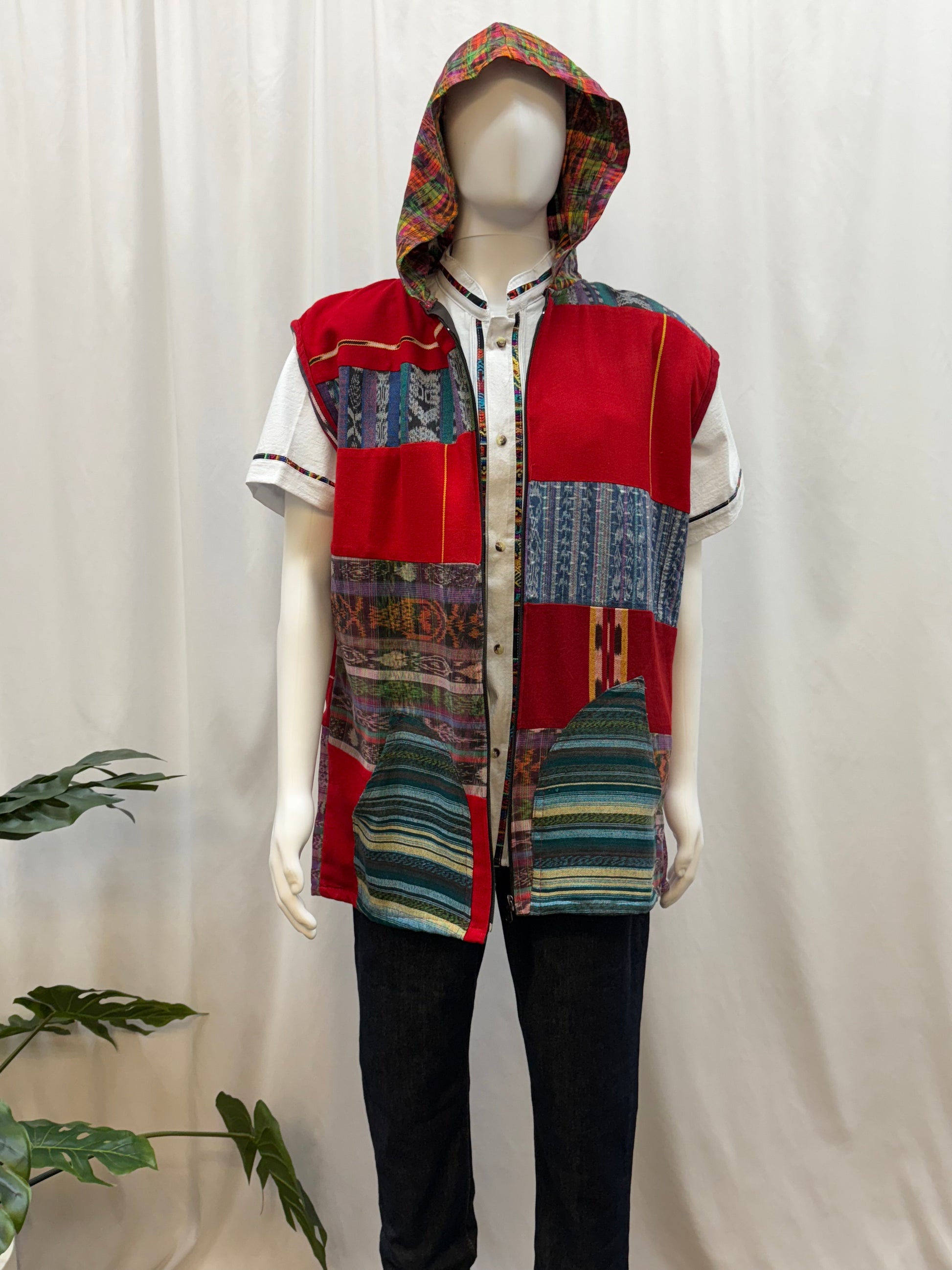 The uniqueness and vibrant colors of the patchwork is beautiful. Each patchwork is handwoven and represents different cities of Guatemala influence by the Mayan culture. The vest is lightweight, it has two pockets and zipper. This is a modern and stylish vest you can wear on any ocassion.